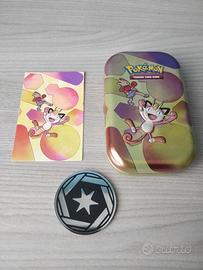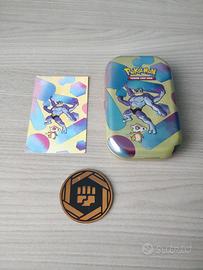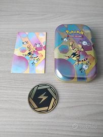 4 Mini Tin da collezione del GCC Pokémon Serie Scarlatto e Violetto - 151 Tutte le scatole includono: - 1 moneta - 1 una cartolina rappresentate l'artwork del tin 1. Electabuzz e Magnemite 2. Meowth e Hitmonchan 3. Machamp e Cubone 4. Scyther e Weezing Vendo in blocco a 36 euro Vendo singolarmente a 9 euro l'una