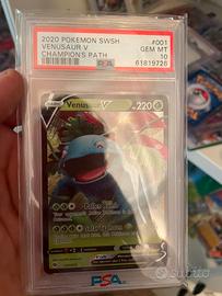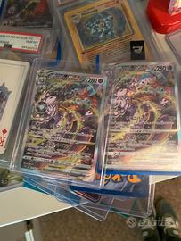 cura estrema, tenute in sleeve e toploader protettivi. 🏆 Pezzi Gradati PSA & NM (Prezzi Singoli): • Gradata PSA 9 Raichu (1996 Japanese Basic Holo): € 320. La gemma del lotto, una rara olografica giapponese di base gradata Mint. Certificazione PSA #76311331. • Venusaur V PSA 10 GEM MT (Champion's Path): € 200 Condizioni perfette, gradata Gem Mint. • Mewtwo e-Reader (Skyridge Era, NM): € 220. Rara carta vintage e-Reader in condizioni eccellenti (NM), molto difficile da trovare così pulita. • Entei EX Dark Explorers (Mint): € 180 Splendida carta EX della serie Black & White, in ottime condizioni. • Sylveon GX Full Art (Mint): € 160 Moderna Full Art immacolata, tenuta in toploader. 🌟 Altre Carte Rare e Vintage (Prezzi Singoli): • Magneton Vintage Fossil (Italian, NM): € 160. Rara carta vintage italiana Near Mint. • Dark Golbat Vintage Team Rocket (English, NM): € 190. Altra carta vintage Near Mint. • Gyarados e-Reader (Skyridge Era, Lightly Played - LP): € 120 Rara vintage e-Reader, ma in condizioni giocate (LP - vedi retro nella foto). • M Charizard EX & Charizard ex (Japanese): € 250 (per entrambe). • M Tortank (Blastoise) EX (French): € 110 • Mewtwo VSTAR (Japanese, doppia copia): € 250€ per la coppia sicuro psa 10 perfette
