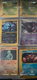Vendo collezione Pokémon d'élite. Pezzi rari dall'era e-Reader (Skyridge), Neo e Prima Serie. Condizioni da EX a NM, sempre in sleeve. 🌌 SKYRIDGE & AQUAPOLIS (e-Reader) • Umbreon (32/144): €110 • Arcanine (3/144): €85 • Gyarados (44/144): €60 • Mewtwo: €32 | Poliwrath: €26 | Magneton: €25 • Machop / Krabby: €7 cad. 👻 PRIME & SPECIALI • Gengar Prime (Triumphant) ECCELLENTE: €105 • Entei EX Full Art (Dark Exp.): €65 🔥 SERIE NEO (Revelation/Destiny/Genesis) • Entei Holo (Potere Ululato) ITA: €90 • Entei Non-Holo: €32 • Dark Crobat (ENG): €45 • Light Vaporeon / Slowbro: €26 cad. • Dark Quilava (2 disp.): €20 cad. • Dark Ariados: €15 | Azumarill: €18 | Pikachu: €15 🦅 VINTAGE WOTC (Fossil/Rocket) • Dark Golbat Holo (ITA) NM: €80 • Zapdos / Magneton Holo: €52 cad. • Aerodactyl (1ª Serie): €36 • Graveler (1ª Serie) NM: €8 • Rocket’s Moltres (JP): €32 • Dark Machamp / Hypno / Gyarados: €20 cad. • Scyther: €18 | Dark Wartortle: €15 | Sneak Attack Holo: €12 • Hitmonlee / Moltres / Golbat / Magmar: €6-15 cad. 📦 INF