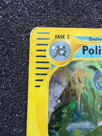 Rarissima carta Pokémon Politoed Holo proveniente dall'espansione Skyridge (2003), l'ultimo set prodotto da Wizards of the Coast. Una delle serie più ricercate e amate dai collezionisti per il design unico "e-Reader".