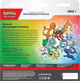 Pokémon: collezione illustrazione Primi compagni d’avventura - Serie 1 del GCC Pokémon (tre carte promozionali, due buste di espansione e un foglio di adesivi), Edizione in Italiano