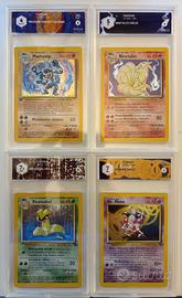 Carte Pokemon gradate da GRAAD dei set Base, Jungle e Fossil tutte italiano, holo e molte 1 edizione. Vendo anche singolarmente. Disponibile alla spedizione. Accetto solo incontro di persona (Roma zona Eur-Mezzocammino), paypal AMICO o bonifico. NON ACCETTO PAGAMENTI ATTRAVERSO SUBITO. Di seguito l'elenco delle carte e dei punteggi Graad: Set Base: Machamp 1ed - 4 - VG/EX --- 120€ Ninetales - 5 - EX --- 50€ Set Jungle: Victreebel - 7.5 - NM+ --- 100€ Mr. Mime - 7 - NM --- 100€ Set Fossil: Aerodactyl 1ed - 7 - NM --- 220€ Articuno 1ed - 7 - NM --- 220€ Muk 1ed - 7.5 - NM+ --- 220€ Raichu 1ed - 7.5 - NM+ --- 200€ Kabutops 1ed - 7.5 - NM+ --- 220€ Haunter 1ed - 7.5 - NM+ --- 150€ Lapras 1ed - 5 - EX --- 100€ Moltres 1ed - 7 - NM --- 250€ Articuno - 7 - NM --- 130€ Gengar - 7 - NM --- 300€ Ditto - 7.5 - NM+ --- 150€ Hypno - 7.5 - NM+ --- 130€