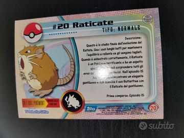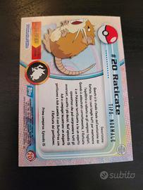 Carta 20 Raticate della serie Pokémon Topps In ottime condizioni pari a Near mint Spedizione con busta protettiva e toploader Cerchi altre carte della stessa serie Topps? Scrivimi!