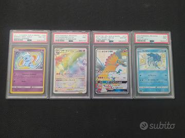 Disponibili prodotti sealed,carte raw e carte gradate Fra i prodotti sealed: -super premium collection di evoluzioni Prismatiche sealed -set allenatore fuoriclasse evoluzioni prismatiche - display di minitin di evoluzioni prismatiche -etb rivali predestinati -etb avventure insieme -box con Topper di avventure insieme -minitin 151. Carte gradate: -Ho-oh ex ultra Shiny PSA 10 jap -Charizard Hyper PSA9 JAP -shining Mew PSA8 ENG -suicune shyne PSA 9 JAP