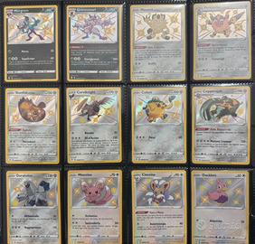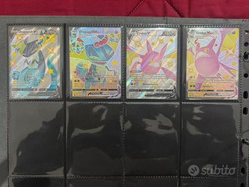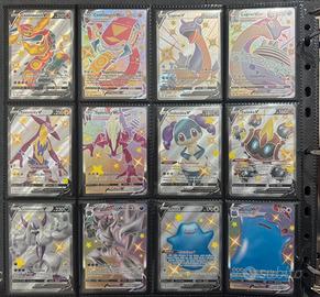 Vendo per passaggio a nuova collezione il Master Set Completo al 100% dell'espansione "Destino Splendente" (Shining Fates) in lingua Italiana. Tutte le carte sono state sbustate personalmente e inserite immediatamente in doppia protezione (Perfect Size + Sleeve). Il set è conservato in un raccoglitore professionale ad inserimento laterale (side-loading) per garantire la massima protezione dei bordi. Cosa include l’offerta: ✅ Set Regolare (001-072): Tutte le carte comuni, non comuni, rare e holo. ✅ Set Reverse: Tutte le 72 varianti Reverse Holo incluse. ✅ Shiny Vault Completo (SV001-SV122): Tutte le 122 carte Pokémon Shiny, incluso il rarissimo Charizard VMAX Shiny (SV107). ✅ Secret Rare: Alcremie VMAX Rainbow (073/072). ✅ Set Promo Completo: Incluse tutte le carte promozionali legate all'espansione (Eevee VMAX dell'ETB, promo delle scatole da collezione, ecc.). Condizioni: Tutte le carte sono in condizioni Near Mint / Mint. Nessun segno di whitening, graffi o pieghe. Disponibili foto macro fronte/retro su richiesta). 📦 Spedizione: Imballaggio ultra-blindato con pluriball e scatola rigida per evitare qualsiasi danno durante il trasporto. No perditempo o offerte ridicole, il set è destinato a veri collezionisti.