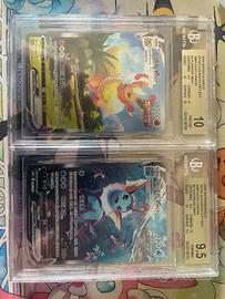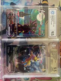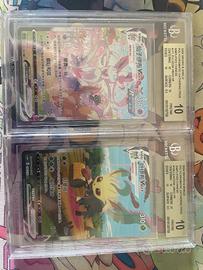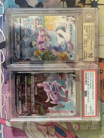 Pokemon Evoluzioni Eteree Tutte Le Eevolution Vmax Gradate 10 e 9,5. Set completo delle evoluzioni di Eevee VMAX dal set Evoluzioni Eteree, gradate BGS(sequenziali) PSA e CCIC come da foto. Condizioni perfette come da certificazione. Preferito lo scambio a mano e in blocco, valuto eventualmente scambio con altre carte, gradate e non, o prodotti sealed. Per dubbi o altre foto scrivere qui o all’ account ilsale91 su cardmrket, dove ho più di 300 vendite, 100% positive. Davide Eevee Sylveon Vaporeon Jolteon Flareon Espeon Leafeon Glaceon Umbreon