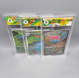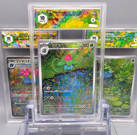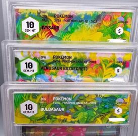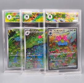 Vendo trio esclusivo di carte Pokémon giapponesi: Venusaur EX (Secret), Ivysaur e Bulbasaur, tutte certificate GEM-MINT 10 da GRAAD!