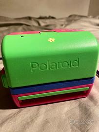 Fotocamera istantanea Polaroid 600 Barbie. Oggetto da collezione prodotto in edizione speciale e in collaborazione tra Polaroid e Mattel nel 1999. Presenta colori vivaci (rosa, viola e verde) e grafiche floreali.