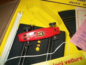 Vintage Policar Aps pista 1:32 anni '60 modello doppio vassoio con molti pezzi in piu', vari depliant e raro catalogo originale, una auto slot F1 Cooper, funzionante foto parti integranti descrizione, autopista ninco lima fleischmann