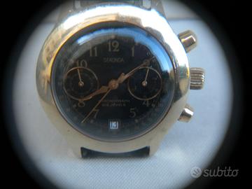 Poljot crono Sekonda anni 80 meccanico carica manuale cassa misura mm.38 quadrante originale vintage nero Sekonda USSR data al 6 movimento meccanico 3133 funzionante cinturino in pelle di coccodrillo nero