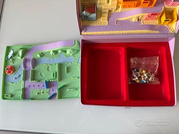 Playset compatto a forma di valigetta apribile, con ambienti dettagliati in miniatura. Prodotto originale Bluebird Toys, prima generazione Polly Pocket, oggi sempre più difficile da trovare.