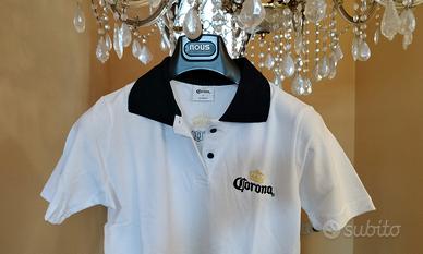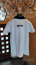 t-shirt polo maglietta maniche corte donna taglia l e borraccia in alluminio pubblicitaria della nota birra corona
