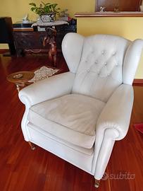 Poltrona Frau "1919" bianca con targa. Dimensioni H. 93 x L. 90 x P. 95 struttura in legno. Imbottituracuscino seduta in piuma. Braccio in bronzo. con rotelle. Ritiro a Milano San Siro