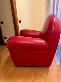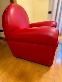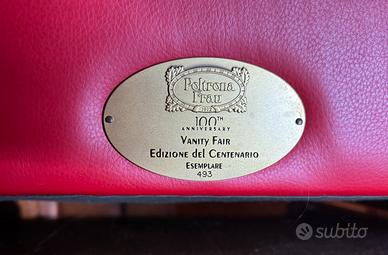 Poltrona Frau Vanity Fair – Edizione del Centenario 1912-2012, esemplare n. 493, autentica e originale.Versione celebrativa numerata in pelle Frau rossa (colore rosso siam) di alta qualità, decorata con bordatura di chiodini.