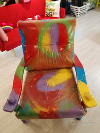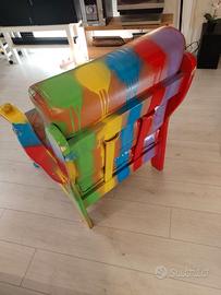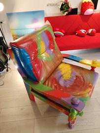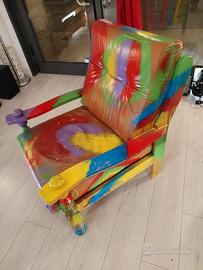 Poltrona in vera pelle, completamente personalizzata e trasformata in un pezzo unico di design.