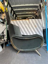Poltrona da collezione in versione limitata 720 Lady è una poltrona di Marco Zanuso per Cassina. Struttura sedile e schienale in acciaio, braccioli in multistrato di pioppo. Imbottitura in poliuretano espanso schiumato privo di CFC e ovatta di poliestere. Sedile, schienale e braccioli hanno densità differenziate a seconda della pressione del corpo. Basi in acciaio in tre colori/finiture: verniciato basalto opaco, ottone e canna di fucile. Rivestimento fisso in tessuto veluto verde con sfumature in oro. Basamento in metallo verniciato colore oro. Piedini in materiale plastico nero.