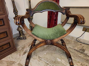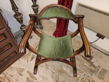 Sedia Poltrona Savonarola Anni50 Modernariato Vintage Design. Tessuto verde.