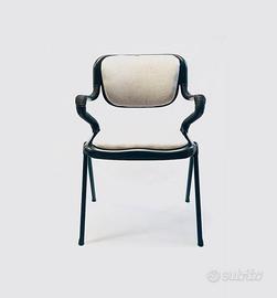Futuristica e dall'aspetto piuttosto alieno, è costituita da una struttura in metallo, sedile e schienale in plastica e un'imbottitura in tessuto color grigio chiaro, questa sedia diventa tanto più bella quanto più la si guarda e si scoprono i dettagli. Una volta che ci si siede, diventa chiaro che si tratta di un capolavoro di design.