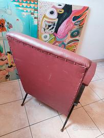poltroncina vintage anni 60 in ecopelle rossa, vissuta altezza cm 85 lunghezza cm 62 Larghezza cm 74