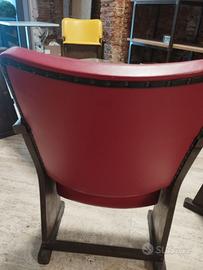 quattro sedie cinema anni 70 rivestite in pelle nei colori nero, rosso, giallo, celeste petrolio.
