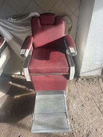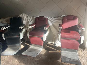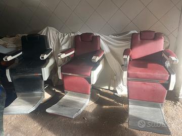 Vendo 2 poltrone da barbiere vintage professionali, originali, solide e funzionanti, con poggiapiedi integrato, braccioli cromati e design iconico retrò anni ’60/’70.