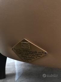 Coppia di poltrone FRAU con targa dorata a bagno galvanico 24 Kt,due pezzi storici della collezione FRAU FUMOIR di Renzo Frau in edizione limitata del 1929 modelli n 194 e 195 rivestimento in pelle color albicocca struttura in faggio stagionato caratterizzate per l'assenza del cuscino sovrapposto al sedile e per il deciso ridimensionamento volumetrico che le rende ,oggi come allora,agili e trasversali nell'uso.Dettagli: Sedile molleggiato con molle biconiche in acciaio legate a mano e appoggiate su cinghie di juta,imbottitura in crine gommato, piedini in faggio tinto noce scuro con ruote in ottone su quelli anteriori.dimensioni:L80cm P80 cm H78cm seduta 40cm.Condizioni eccellenti.Ritiro sul posto,NON SPEDISCO