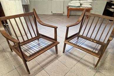 Coppia di poltrone svedesi in legno. Da rilucidare e sostituire rete appoggio cuscini. Visibili a Minerbio(BO)