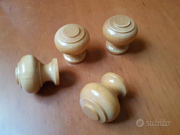 Pomelli per mobili in legno, con una finitura naturale, colore marrone chiaro, laccate.Nuovi, mai usate. Sono ideali per rinnovare o completare mobili come armadi, cassettiere, credenze, comodini o mobili da cucina.Il loro design semplice e la finitura naturale li rendono adatti a diversi stili di arredamento, dal classico al moderno, dal vintage allo shabby chic.Materiale:Sono realizzati in legno, un materiale naturale, robusto e durevole.
