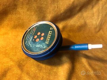 Pompa a pressione degli anni 60 della PIRELLI con la dicitura “soffietto per il gonfiamento di battelli – zattere e materassi pneumatici” con la di sotto e nella part superiore, i marchi storici della Pirelli. L’oggetto è funzionante con qualche abrasione nella grafica come si evince dalle foto.diam. della pompa cm. 11