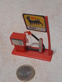 Chiosco anni 60-70 prodotta dalla italiana Grisoni, riproduce un distributore di benzina del brand agip competo di colonnetta pressione fomme ed insegna a bandiera. Non presenta rotture ed è cimpleta di tutti gli adesivi.