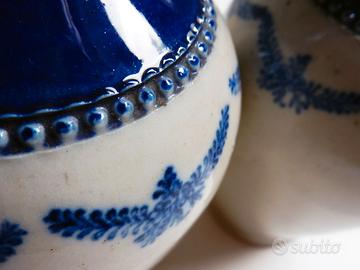 Vendo due bottiglie vintage per assenzio in gres porcellanato Pont-Des-Vernes. La fabbrica francese cessò la produzione nel 1957 e le due bottiglie furono acquistate negli anni '50. Perfette condizioni. Ritiro a Milano in zona Arena Civica