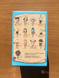 Ogni scatola contiene un Labubu-macaron vestito da personaggio di One Piece; Luffy, Zoro, Nami, Sanji, Chopper, Jinbe, Sabo, Trafalgar Law, e possibilità di trovare il personaggio Secret