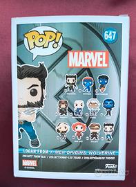 Funko Pop! Marvel Logan #647 from X-Men Origins: Wolverine. Figura in vinile a testa oscillante, alta circa 9 cm, in scatola con finestra. Nuovo, in confezione originale, per collezionisti.