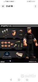 Raro Braccio di Ferro (Popeye), nella prestigiosa linea One:12 Collective che include due teste intercambiabili, con dettagli dipinti a mano, che mostrano la sua tipica espressione severa e il suo classico sguardo "salato". Vestito con il suo abbigliamento da marinaio, completo di pantaloni blu, stivali marroni e camicia nera, il personaggio è dotato di un pea coat rimovibile e di un’impressionante gamma di accessori.