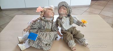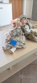 Bambole in porcellana da collezione in buono stato, sempre tenute nella scatola, con i vestiti beige della collezione R&BC alte cm. 27.