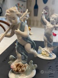 statuine in porcellana di putti, identificate come "Le quattro stagioni" di Metzler & Ortloff.