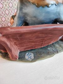 PORCELLANA CAPODIMONTE VECCHIO SU PANCHINA Con ombrello