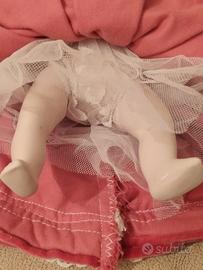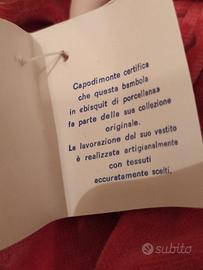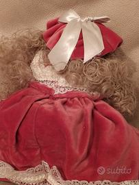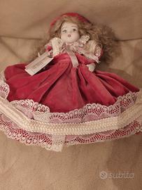 Bambola in porcellana di Capodimonte con vestito in velluto.