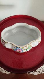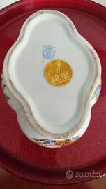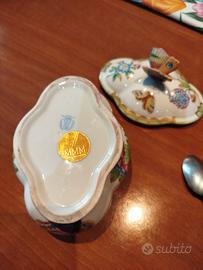 Bellissima e preziosa scatola di porcellana Herend serie Queen Victoria acchiappa farfalle, misura 13 x 10 e piccolo porta candele sempre Herend.