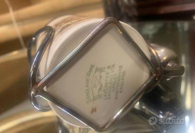 ceramica e metallo argentato della Lancaster Ware Sandland Ltd., Hanley England, spesso utilizzato per confetture o condimenti. ALTA C,M \17