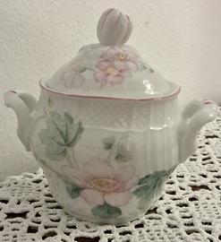 Zuccheriera h13 cm in porcellana Richard Ginori Italia, modello Vecchio Ginori, decorazione floreale.