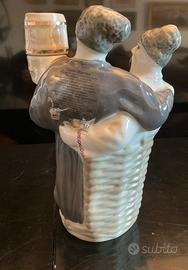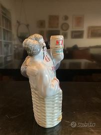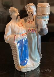 Bottiglia vintage di porcellana x vodka- raffigura due cosacchi- alta 24 cm peso 900 grammi- piccola escrescenza beige visibile in foto.