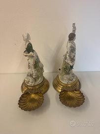 Coppia di statuette di porcellana rappresentanti due pastori, si trovano in perfette condizioni.