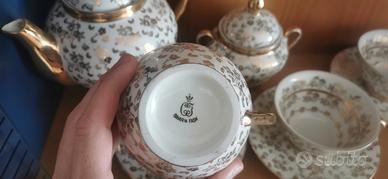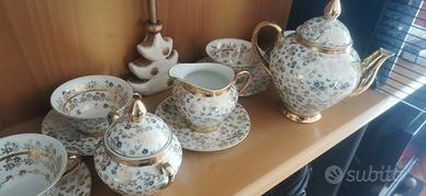 La lunga tradizione di porcellane bavaresi trova un suo esempio antico e caratteristico in questo set. La forma elegante e raffinata delle tazze, della teiera, porta-zucchero e bricchetto del latte è assolutamente originale e graziosa.