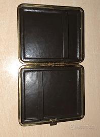 Elegante portasigarette vintage con finitura in metallo dorato. Perfetto per conservare le tue sigarette con stile. - Design classico. - Interno foderato in similpelle marrone. - Chiusura a scatto.