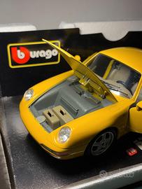 Splendido modellino della leggendaria Porsche 911 Carrera del 1993, realizzato da BBurago in scala 1:18. Colore giallo brillante, con tutti i dettagli iconici perfettamente riprodotti.