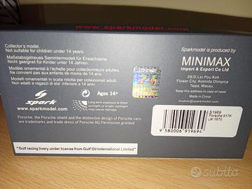 vendo bellissima Porsche 917k gulf della Spark scala 1/43. modello perfetto con teca basetta e scatola,pari al nuovo. è il modello guidato da Steve McQueen nel film "le mans". per ulteriori informazioni e foto aggiuntive non esitate a contattarmi su subito o per messaggio o whatsapp al 3395933822 e sarete ricontattati il prima possibile. non accetto pagamenti con tuttosubito. grazie