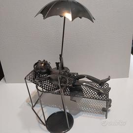Portabottiglie Vino in ferro battuto fatto a mano - Rlax al mare - uomo Scultura - Supporto per Bottiglie di Metallo. Un'idea regalo indimenticabile e divertente per tutti coloro che amano l'ironia! bella da esporre insieme ad altre in un bar o locale e anche in casa.