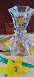 candelabro in cristallo di piombo e rosa applicata in silver vecchia arte cm 9 vendo più spese di spedizioni a parte