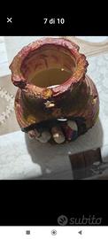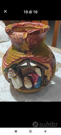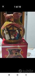 Porta candele, con natività. (All'interno di un vaso di coccio decorato). Altezza cm. 20. Nuovo. Nella scatola originale